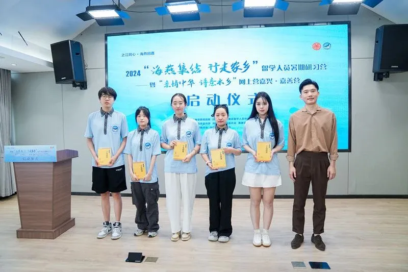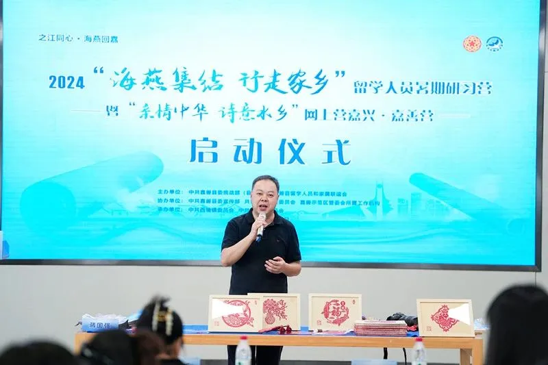 8月2日,由中共嘉善县委统战部(县侨联)、嘉善县留学人员和家属联谊会主办,中共嘉善县委宣传部、共青团嘉善县委员会、嘉善示范区管委会所属工作机构协办,中共嘉善县西塘镇委员会、中共嘉善县干窑镇委员会承办的2024“海燕集结·行走家乡”留学人员暑期研习营暨“亲情中华·诗意水乡”网上营嘉兴·嘉善营于县委统战部“同心之家”阵地启动。共有来自美国、加拿大、英国、澳大利亚、日本、新西兰等多个国家和地区的25名嘉善籍优秀海外留学人员参加现场活动。来自美国、加拿大、英国、德国、澳大利亚、荷兰、丹麦、日本、新西兰、奥地利和中国香港等国家和地区的嘉善籍华侨华裔青少年以线上的方式参加网上营活动。市委统战部部务会议成员、市侨办副主任、市侨联副主席印惠丽,县委常委、统战部部长郑洁梅,县留学人员和家属联谊会会长王钟英出席启动仪式,县委统战部副部长、县侨联主席张润纯主持。