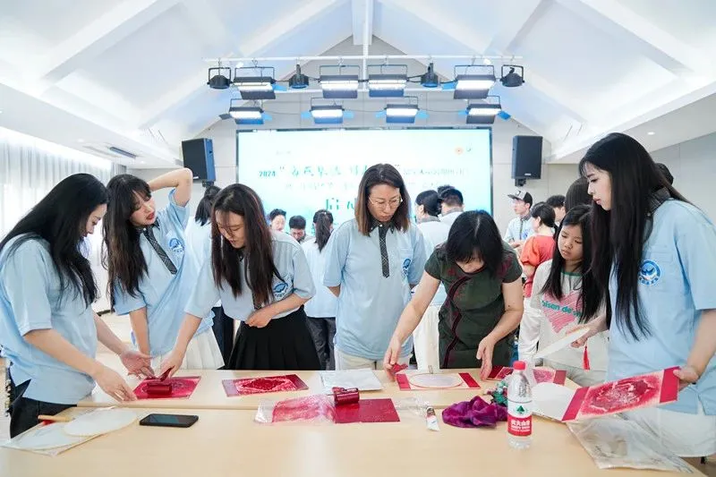 在嘉善拓画非遗传承人蒋国强老师的带领下,大家纷纷上阵,亲手制作出一幅幅独具匠心的非遗拓画团扇。