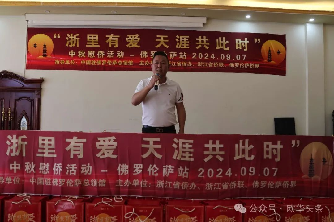 9月7日,“浙里有爱 天涯共此时”中秋慰侨活动佛罗伦萨站在意大利佛罗伦萨隆重举行。此次活动在中国驻总领馆的指导下,由浙江省侨办、浙江省侨联以及佛罗伦萨领区侨界共同主办,旨在为海外侨胞送上中秋祝福,传递家乡的关怀与温暖,让远在异国的海外侨胞感受到节日的团圆氛围。